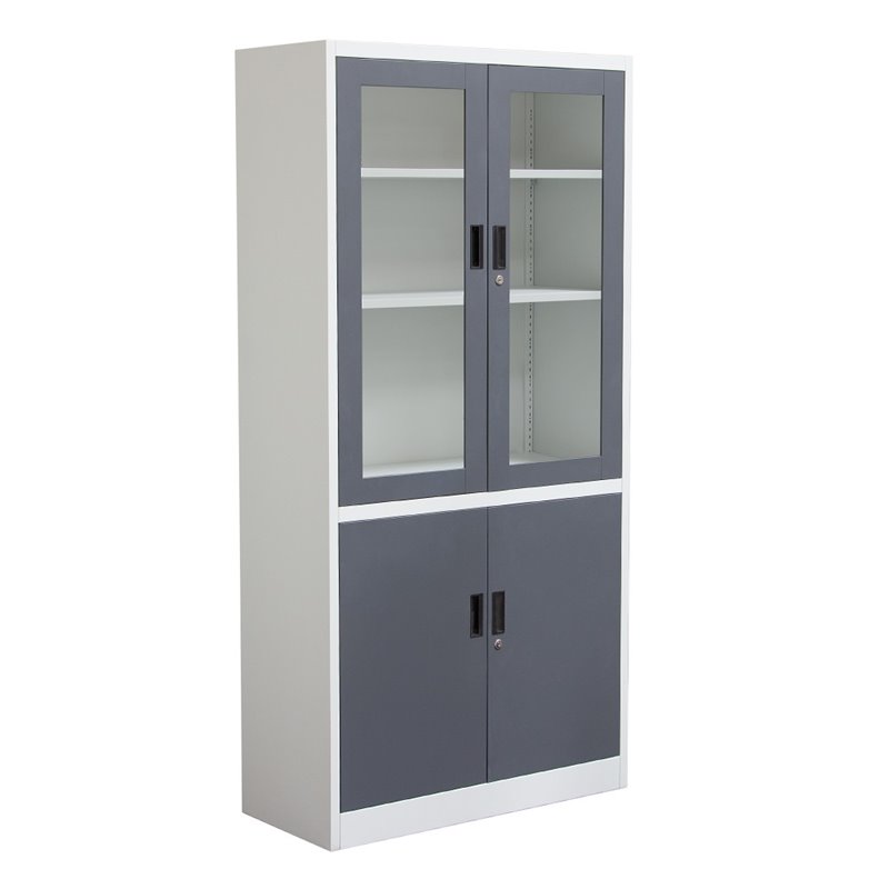 With the NOVA QwiK engineering, assembly is a snap and you'll find the ideal solution to your storage needs in your office, home, school or institution.Finish: Dark Gray\/Off WhiteMaterial: SteelConstructed of 22 Gauge SteelDurable Powder Coated Finish in Dark Gray with Off White TrimFeatures Three Adjustable Interior ShelvesBuilt-In Key Lock for Added SecurityTempered Glass Door FrontsUp to 1 Year WarrantySpecifications:Overall Product Dimensions: 73 H x 16 W x 36 DProduct Weight: 117 lbs
