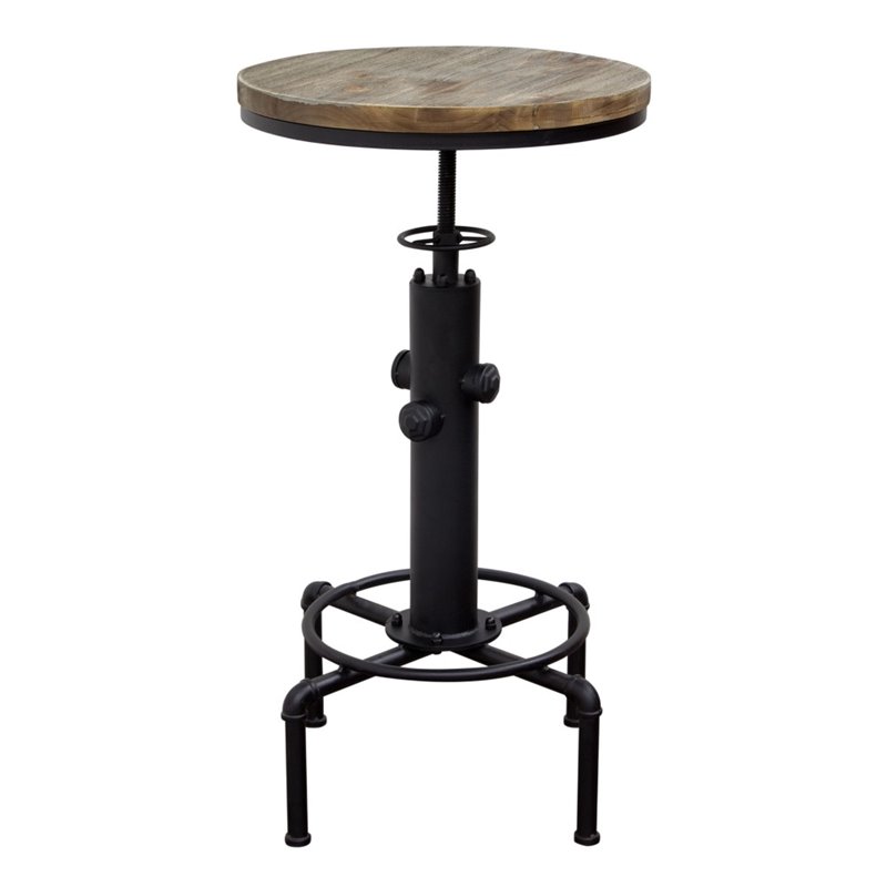 Finish: BlackMaterial: IronPowder Coat Black Finish on Iron BaseSolid Pine Table Top in Weathered Gray FinishUp to 1 Year WarrantySpecifications:Overall Product Dimensions: 30 - 36 H x 20 W x 20 DProduct Weight: 16 lbsTable Top Diameter is 20 InchesAdjustable Height Table from 30 Inches to 36 Inches