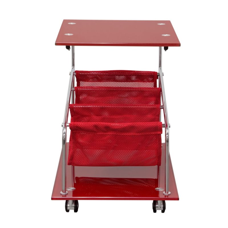 Casters provide mobility for use throughout the home.Finish: RedMaterial: GlassCastered Accent CartMagazine Caddy StorageRed Tempered Glass Top &