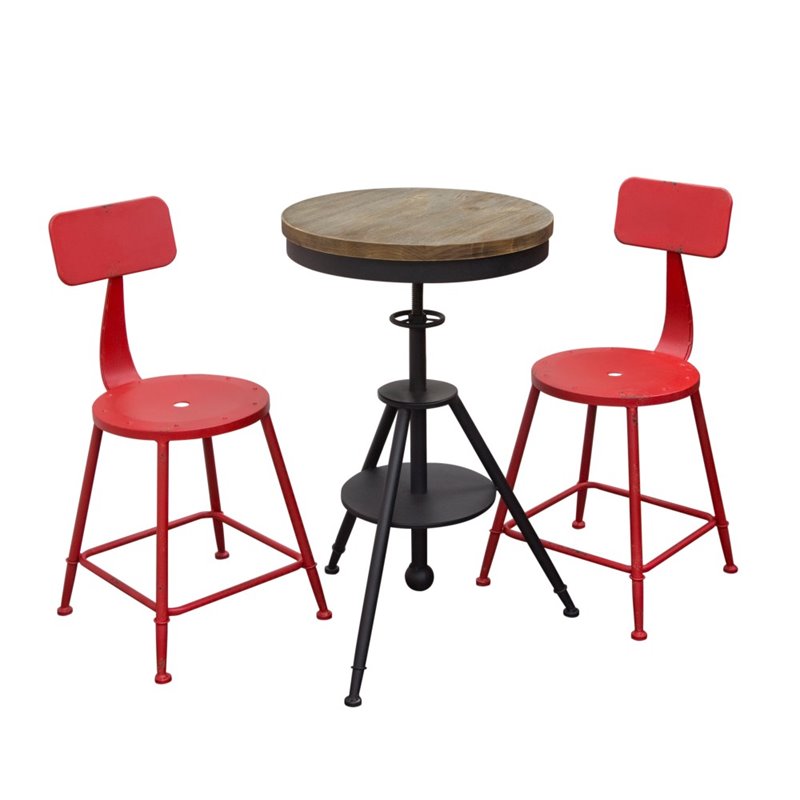 Diamond Sofa - Pub Sets - DOUGLASBTRE3PC - The Douglas Vintage Adjustable Height Bistro Table with (2) Douglas Chairs in Antique Red Powder Coated finish by Diamond Sofa exudes an industrial and architectural vibe to its surroundings