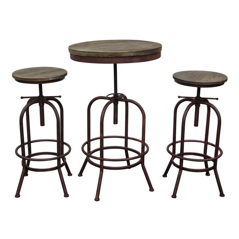 Stools are packaged and sold as (2) stools per box.Finish: BrownMaterial: IronHand Painted Distressed Rust Black on Iron BaseUp to 1 Year WarrantySpecifications:Table Dimensions: 30 - 38 H x 24 W x 24 DStool Dimensions: 26 - 30 H x 19 W x 19 DAdjustable Height Stool from 26 Inches to 30 Inches (x2) Table Weight: 20 lbsStool Weight: 26 lbs