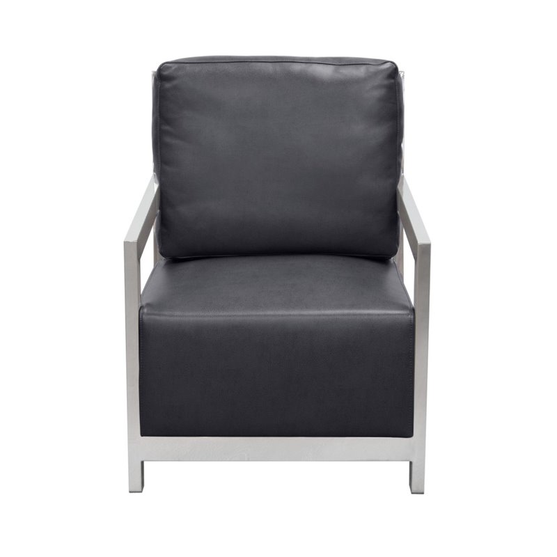 Elephant Gray.Finish: BlackMaterial: Bonded LeatherCrisp, Clean Streamlined Design for Modern LivingPremium Textured Bonded Leather Cushion in Black FinishPolished Stainless Steel Frame w\/ Ladder BackSpecifications:Overall Product Dimension: 34H x 34W x 27DProduct Weight: 57 lbs