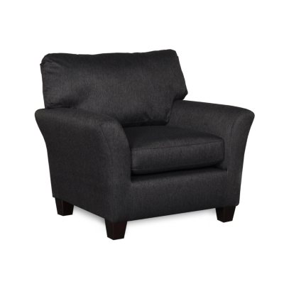 The Sofa Smart Shag II Chair's deep grey and black fabric match perfectly with its transitional styling
