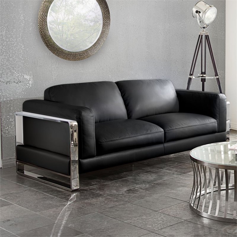Finish: BlackMaterial: PUBlack Leatherette FinishPolished Stainless Steel ArmCrisp, Clean Streamlined Design for Modern LivingUp to 1 Year WarrantySpecifications:Overall Product Dimensions: 33 H x 39 W x 82 DProduct Weight: 199 lbs