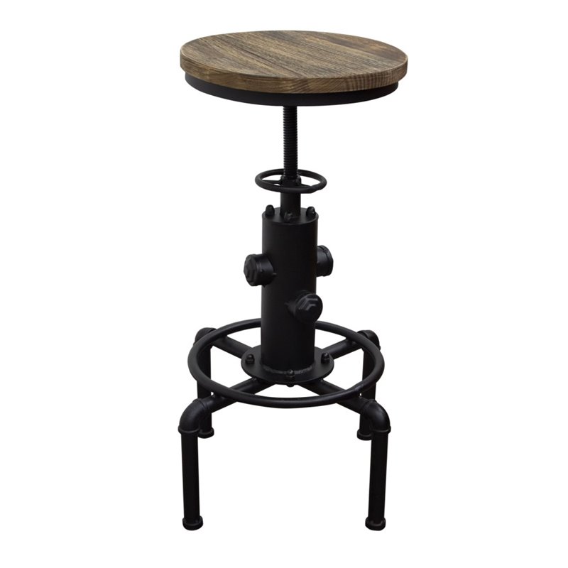 Finish: BlackMaterial: IronPowder Coat Black Finish on Iron BaseSolid Pine Seat in Weathered Gray FinishUp to 1 Year WarrantySpecifications:Overall Product Dimensions: 23 - 29 H x 13 W x 13 DProduct Weight: 13 lbsSeat Top Diameter is 13 InchesAdjustable Height Stool from 23 Inches to 29 Inches